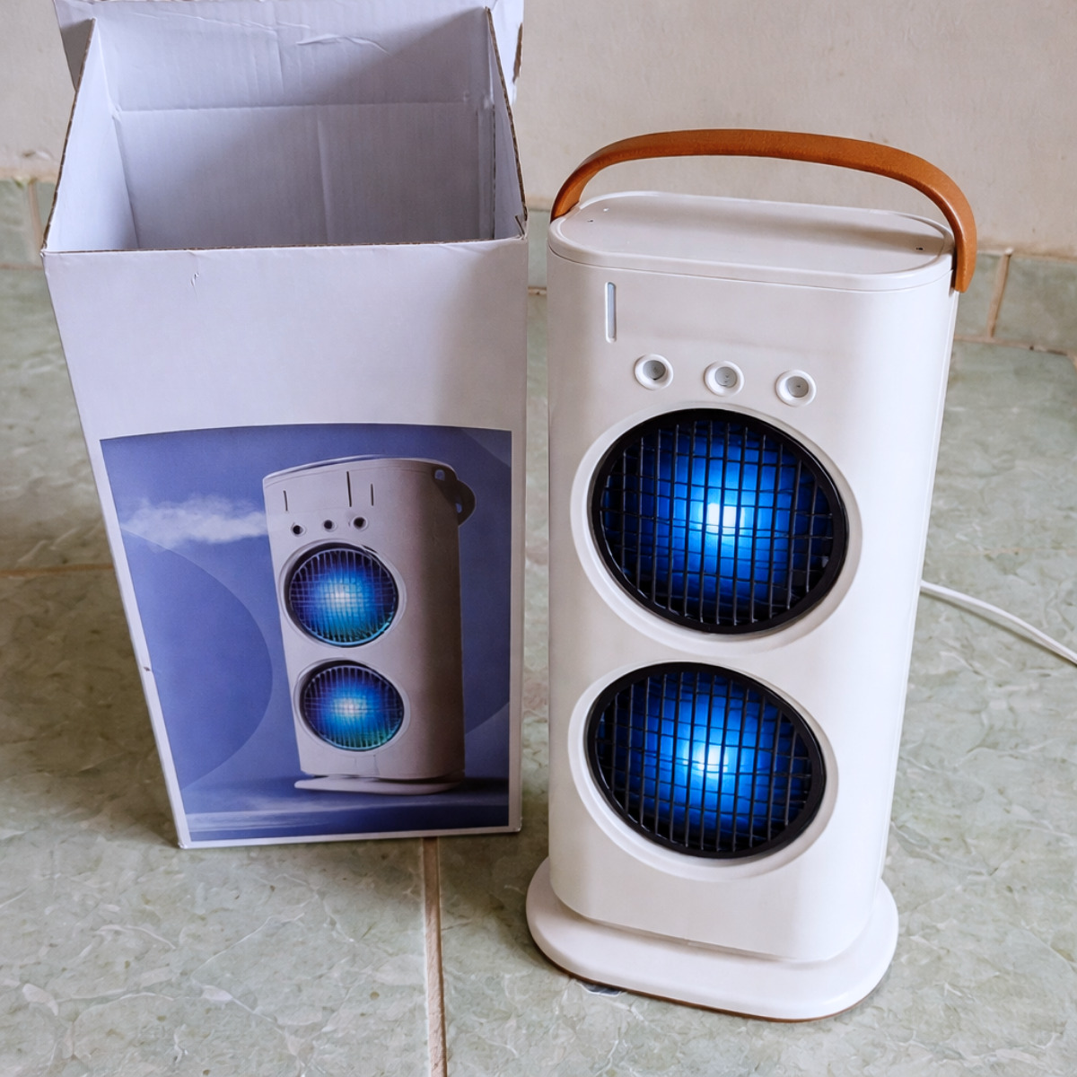 Eu uso para resfriar meu quarto e funciona perfeitamente. Meu quarto tem 15 metros quadrados e, graças a esse pequeno dispositivo, posso dormir confortavelmente nas noites de verão.