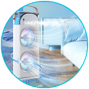 Eu recomendo este produto se você está olhando para esfriar qualquer área rapidamente. Assim que você ligá-lo, ele começa a soprar ar fresco. Eu realmente gosto que ele funciona mesmo em salas muito quentes. Também adoro o spray de umidade!